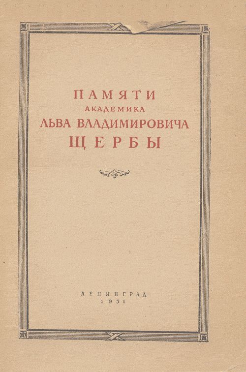 Памяти академика Льва Владимировича Щербы (1880–1944) (1951, инскрипт)