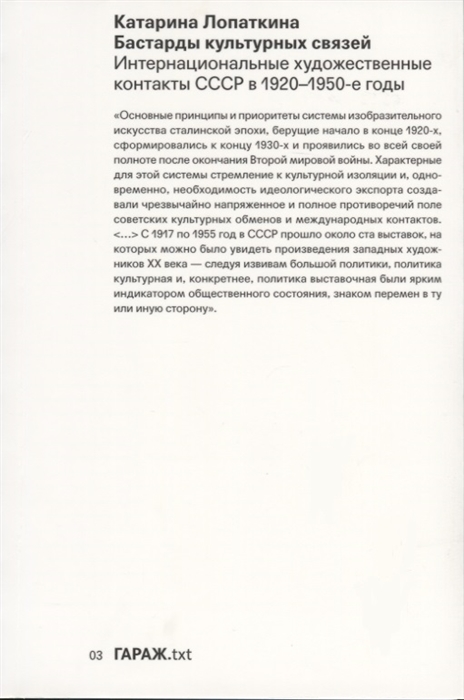 Лопаткина К. Бастарды культурных связей. Интернациональные художественные контакты СССР в 1920-1950-е годы